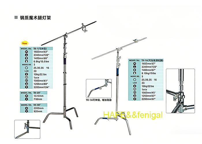 The TK Series comprises heavy-duty steel magic arm light stands designed for professional film, photography, and studio lighting applications. These stands are renowned for their robust construction, versatile functionality, and enhanced stability, making them suitable for both studio and location work.